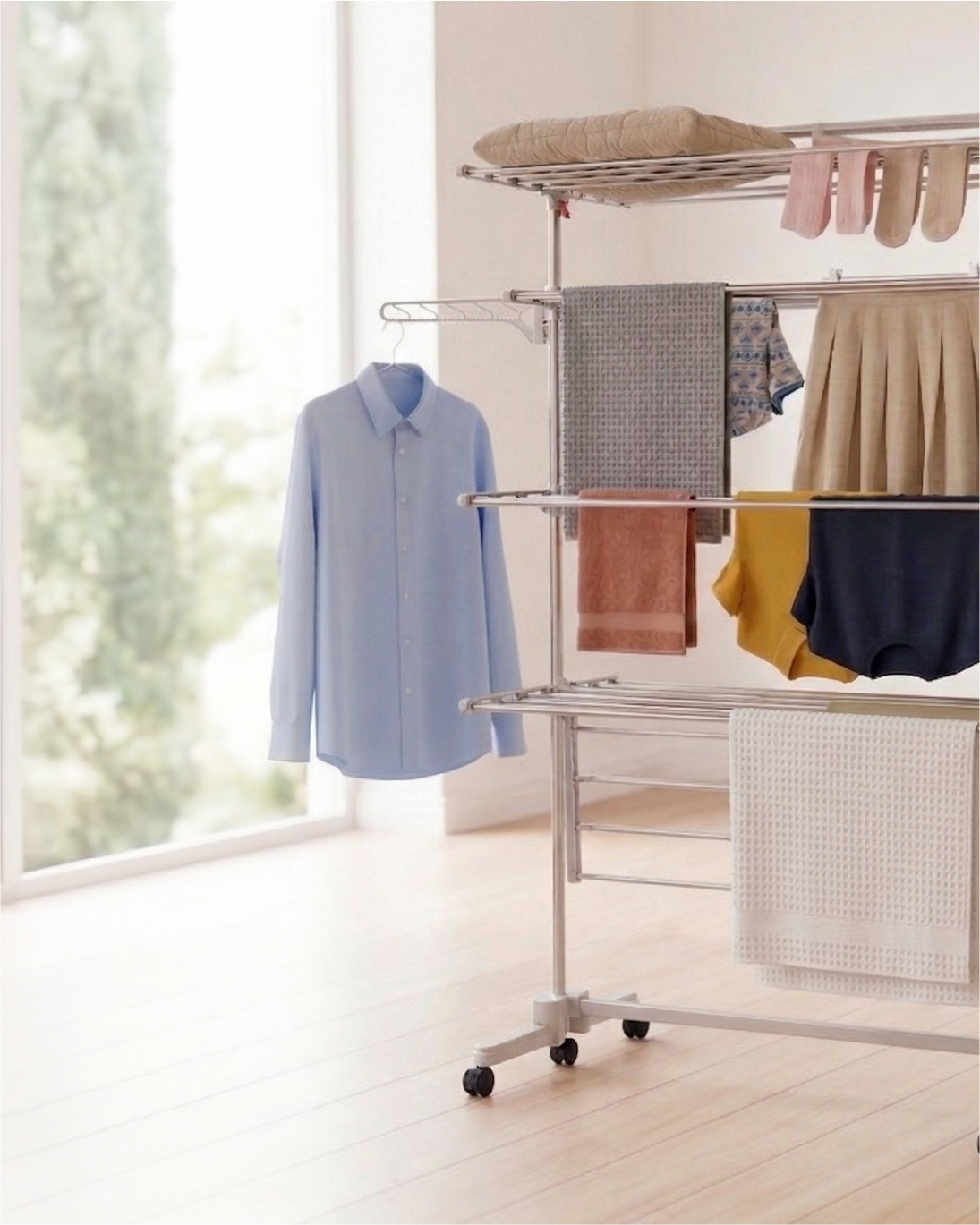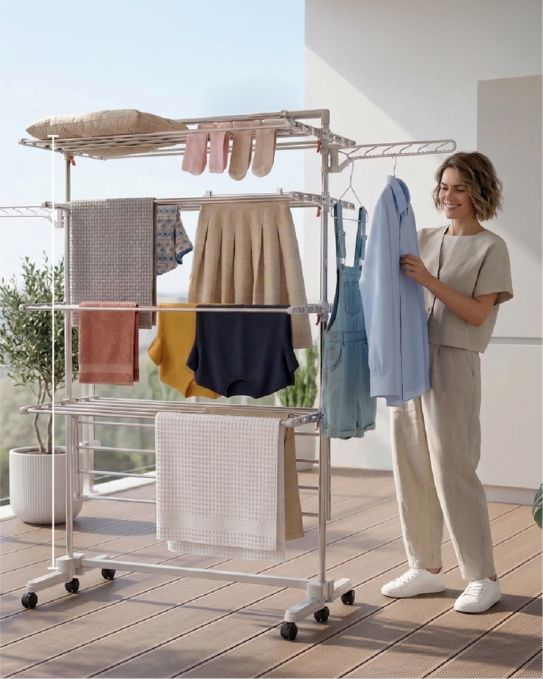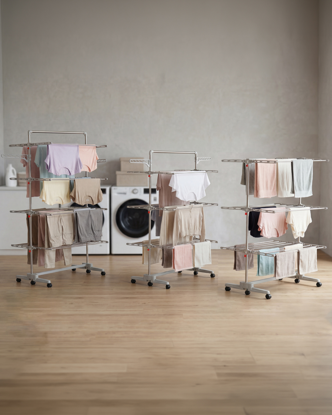 Ceraware Home S3 Premium 3 Katlı Çamaşırlık Made in Korea Tam Katlanır Tekerlekli Çamaşır Kurutmalık